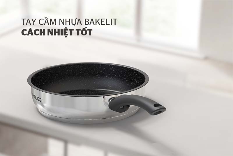 Chảo chống dính trang bị tay cầm nhựa Bakelite cách nhiệt, cầm nắm di chuyển, thao tác nấu ăn an toàn