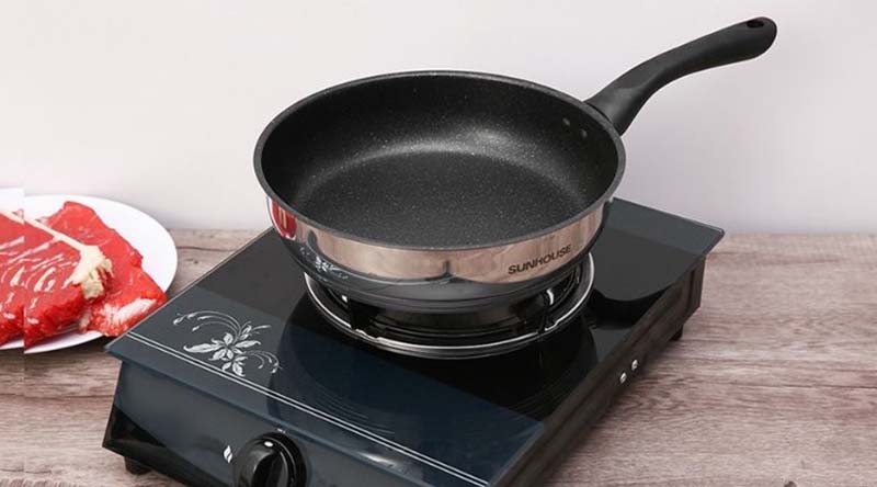 Chảo chống dính Sunhouse cấu tạo 5 đáy, chất liệu inox 430 dẫn từ tốt, truyền nhiệt nhanh