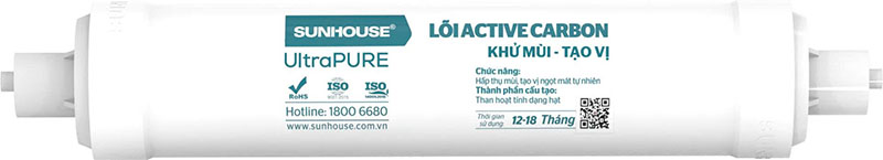 - Chức năng: Lõi tạo vị Sunhouse Carbon có chức năng hấp thụ mùi, tạo vị ngọt mát tự nhiên cho nước. Giúp cho nước dễ uống hơn, mà vẫn đảm bảo tinh khiết và an toàn với sức khỏe.