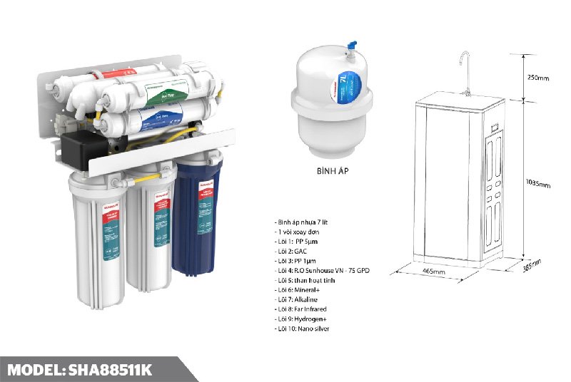 Máy Lọc Nước Tủ Đứng Sunhouse 10 Lõi SHA88511K