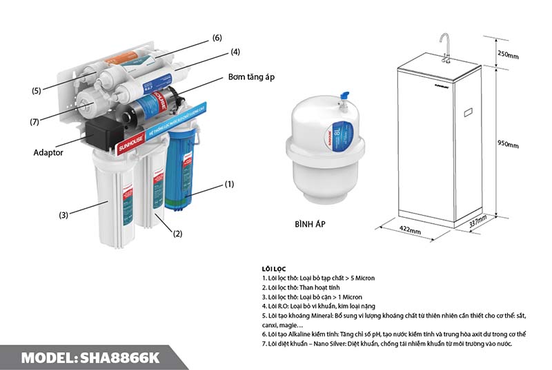 Máy lọc nước R.O 7 lõi SUNHOUSE SHA8866K