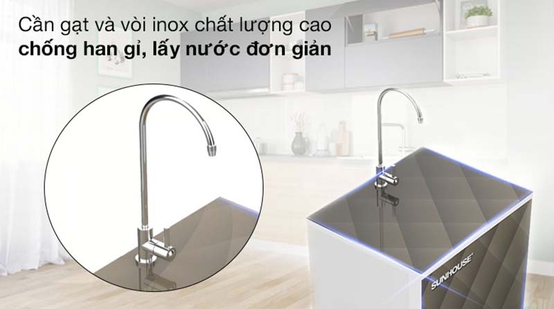 - Không chỉ lọc nước đơn thuần, máy lọc nước RO SUNHOUSE SHA8858K còn tăng vị cho nước và bổ sung Alkailine cùng nhiều khoáng chất cần thiết cho cơ thể. Sản phẩm tạo ra nguồn nước kiềm tính, trung hòa axit dư thừa trong tế bào, giúp giảm trừ bệnh tật, bệnh ngoài da.