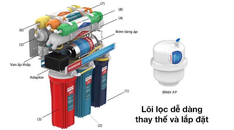 Máy Lọc Nước Tủ Đứng Sunhouse 8 Lõi SHA8858K