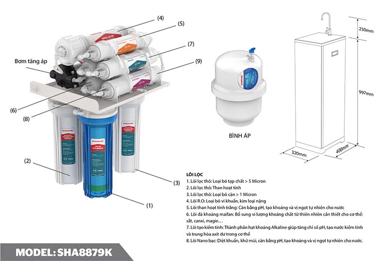 Đánh giá Máy Lọc Nước Tủ Đứng Sunhouse 8 Lõi SHA8879K