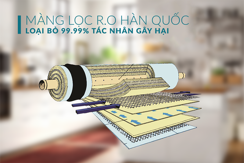 - Màng lọc R.O Hàn Quốc loại bỏ 99.99% tác nhân gây hại