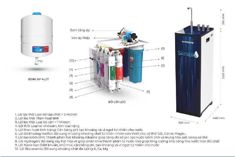 - Bộ 10 lõi lọc cho nước sạch tinh khiết và giàu khoáng chất