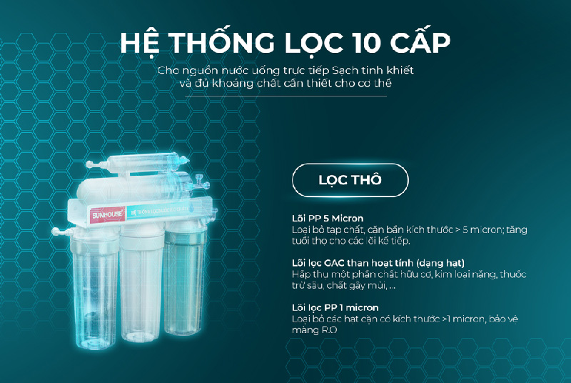 máy lọc nước nóng lạnh sunhouse 10 lõi