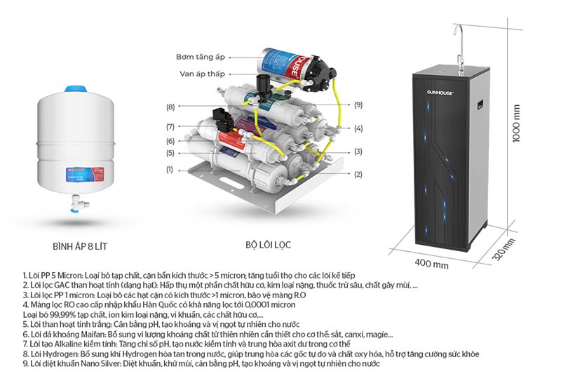 Máy Lọc Nước Tủ Đứng 9 Lõi Sunhouse