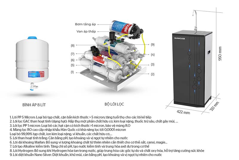 MÁY LỌC NƯỚC R.O Stech 9 LÕI SUNHOUSE SHA8849K