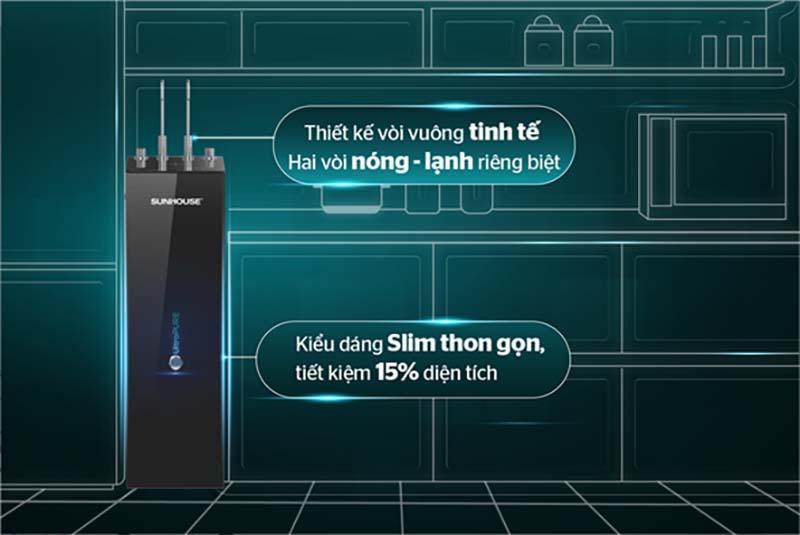 Lấy cảm hứng sáng tạo không giới hạn cho không gian mới, Máy lọc nước RO UltraPURE SUNHOUSE 10 lõi SHA76212KL được thiết kế kính tràn viền sang trọng, không có viền hay gờ ở các cạnh, giúp không bị tích bụi vào các kẽ hở và dễ dàng cho việc vệ sinh. Kiểu dáng slim gọn gàng hơn 15% diện tích, càng tôn len sự hiện đại cho không gian nhà bạn.