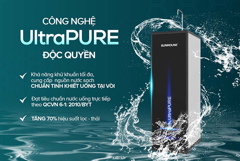 Công nghệ UltraPURE là công nghệ độc quyền của SUNHOUSE và được ứng dụng trong dòng sản phẩm máy lọc nước thế hệ mới. Nhờ có hệ thống lọc đa tầng bao gồm các cấp lọc thô – lọc tinh – lọc bù khoáng được ứng dụng công nghệ UltraPURE, nước sau lọc luôn sạch vi khuẩn, tạp chất, ion kim loại nặng, amip, asen... và được bổ sung đầy đủ khoáng chất thiết yếu cho cơ thể.