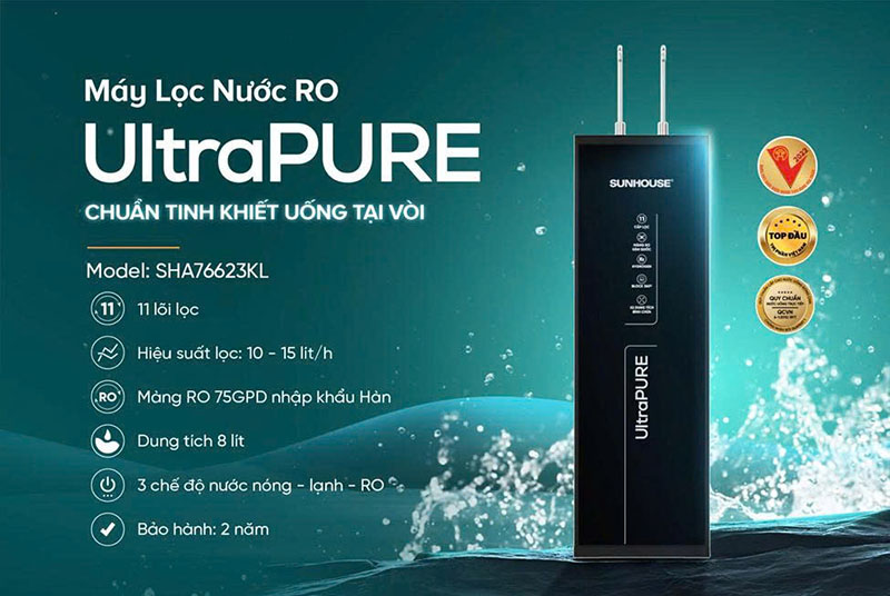 Máy Lọc Nước 3 Chế Độ Nóng - Lạnh - Thường UltraPURE Sunhouse 11 Lõi SHA76623KL
