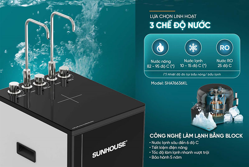 Máy Lọc Nước 3 Chế Độ Nóng - Lạnh - Thường UltraPURE Sunhouse 11 Lõi SHA76636KL