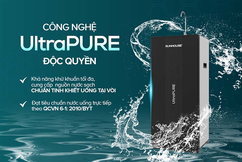 Công nghệ UltraPURE là công nghệ độc quyền của SUNHOUSE và được ứng dụng trong dòng sản phẩm máy lọc nước thế hệ mới. Nhờ có hệ thống lọc đa tầng bao gồm các cấp lọc thô – lọc tinh – lọc bù khoáng được ứng dụng công nghệ UltraPURE, nước sau lọc luôn sạch vi khuẩn, tạp chất, ion kim loại nặng, amip, asen... và được bổ sung đầy đủ khoáng chất thiết yếu cho cơ thể.
