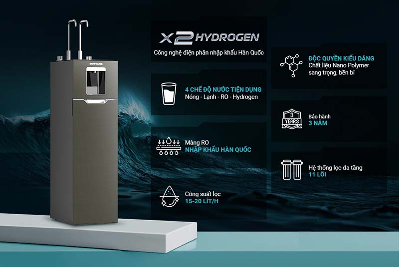 | Vòi nóng lạnh tích hợp | 3 vòi, 4 chế độ nước: Nóng – Lạnh – RO – Hydrogen |