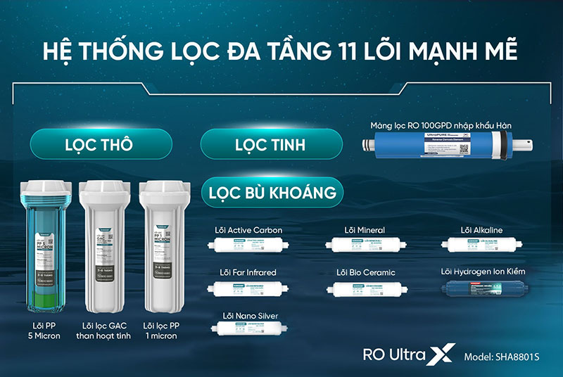 MÁY LỌC NƯỚC RO UltraX SUNHOUSE 11 LÕI SHA8801S – TIÊN PHONG NƯỚC KHỎE, GIÀU HYDROGEN