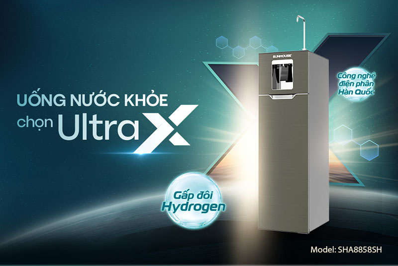UltraX SHA8858SH là dòng máy lọc nước RO cao cấp tiên phong trong việc ứng dụng công nghệ điện phân Hydrogen với điện cực Titanium phủ Platinum nhập khẩu Hàn Quốc. Không chỉ tạo ra nguồn nước giàu hydrogen giúp tăng cường đề kháng, sản phẩm còn sở hữu mặt tủ Nano Polymer sang trọng, thiết kế tối giản tinh tế và hệ thống 11 lõi lọc đa tầng mạnh mẽ – xứng đáng là lựa chọn lý tưởng cho mọi gia đình hiện đại.